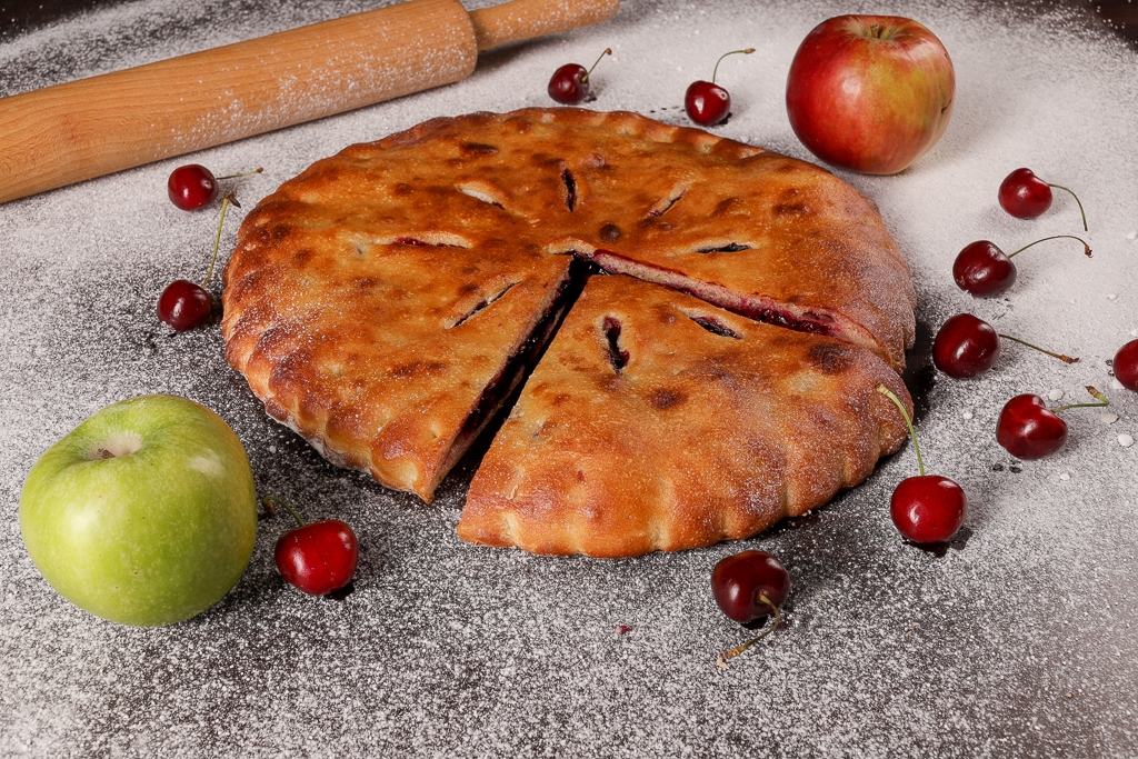 Если хотите сладкого без вреда, то лучший вариант заказать у нас осетинский пирог с яблоком и вишней. Особенно он хорош для детского праздника, в День рождения. Прекрасно подходит он для подарка в красивой коробке близким и друзьям, а так же для праздничных мероприятий в офисе или дома. Осетинские пироги в меру сладкие, в них минимум тонкого теста, поэтому на фигуре не отразится. Вишня очень полезна, это хорошо известно. В начинку сахар можно не добавлять вовсе или положить в самом малом количестве, чтобы подчеркнуть естественный вкус. В сочетании с яблоками вишня особенно великолепна для начинки. При выпекании осетинских пирогов с яблоком и вишней мы выбираем только самые качественные, спелые ягоды и фрукты.
