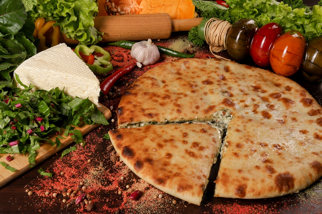 Осетинский пирог с сыром и зелеными листьями свеклы это классический национальный